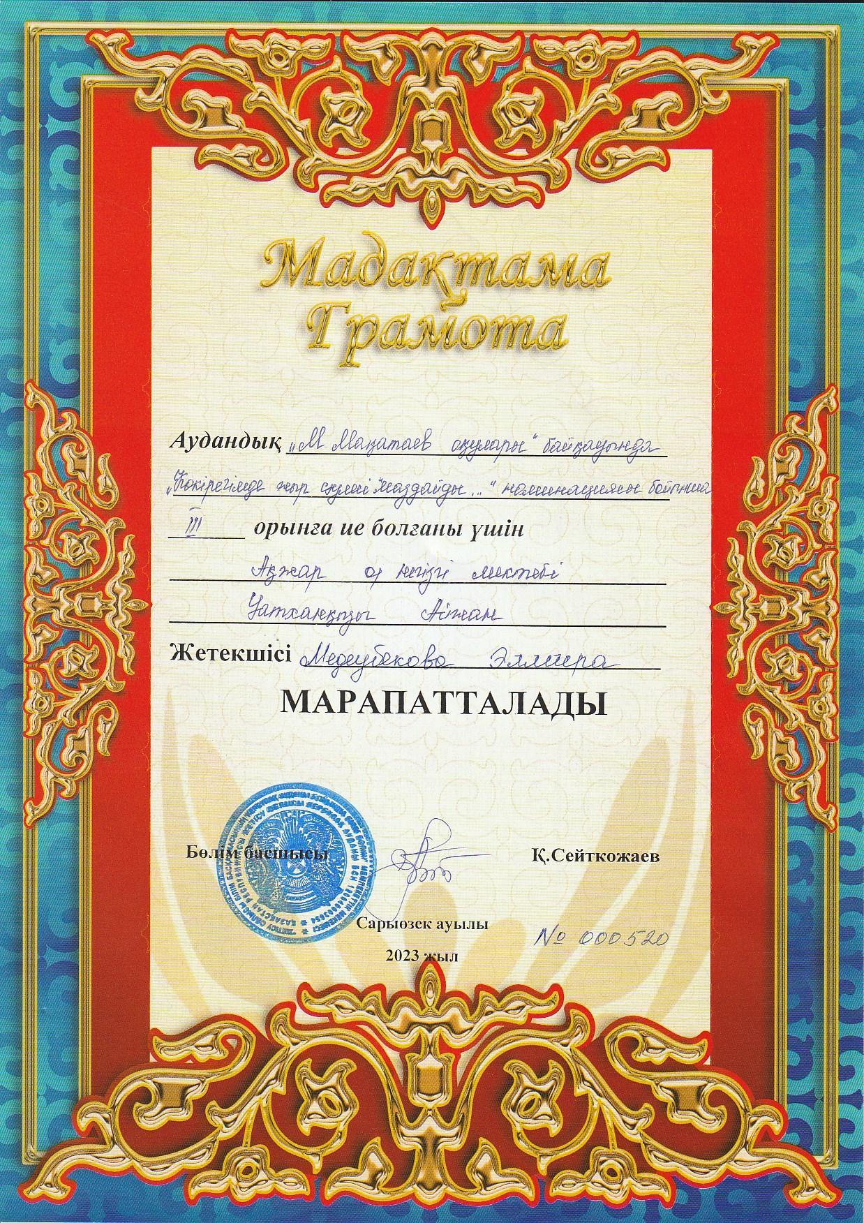 2022-2023 оқу жылындағы оқушыларымыздың жетістігі » Жетісу облысы Кербұлақ ауданы Ақжар орта мектебі